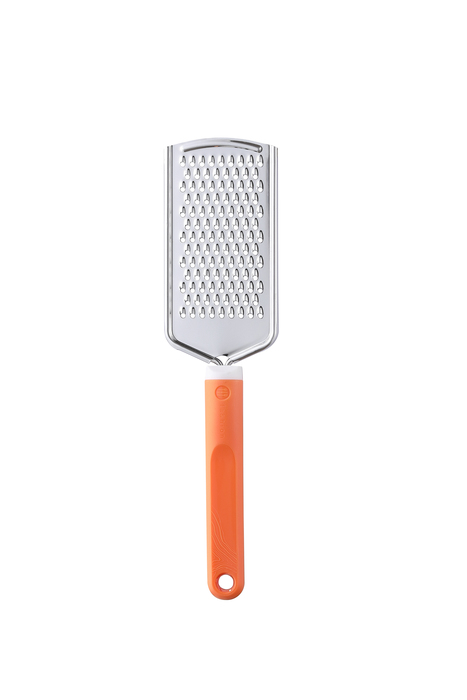 Терка виготовлена з високоякісної нержавіючої сталі з ручкою. Є зручна підвісна петелька в робочій зоні кухні. Прилади з нержавіючої сталі здатні служити довгі роки, вони успішно протистоять дрібним подряпинам, стійкі до корозії і гігієнічні.