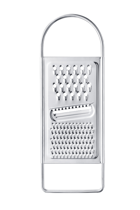 Терка виготовлена з високоякісної нержавіючої сталі з ручкою. Є зручна підвісна петелька в робочій зоні кухні. Прилади з нержавіючої сталі здатні служити довгі роки, вони успішно протистоять дрібним подряпинам, стійкі до корозії і гігієнічні.